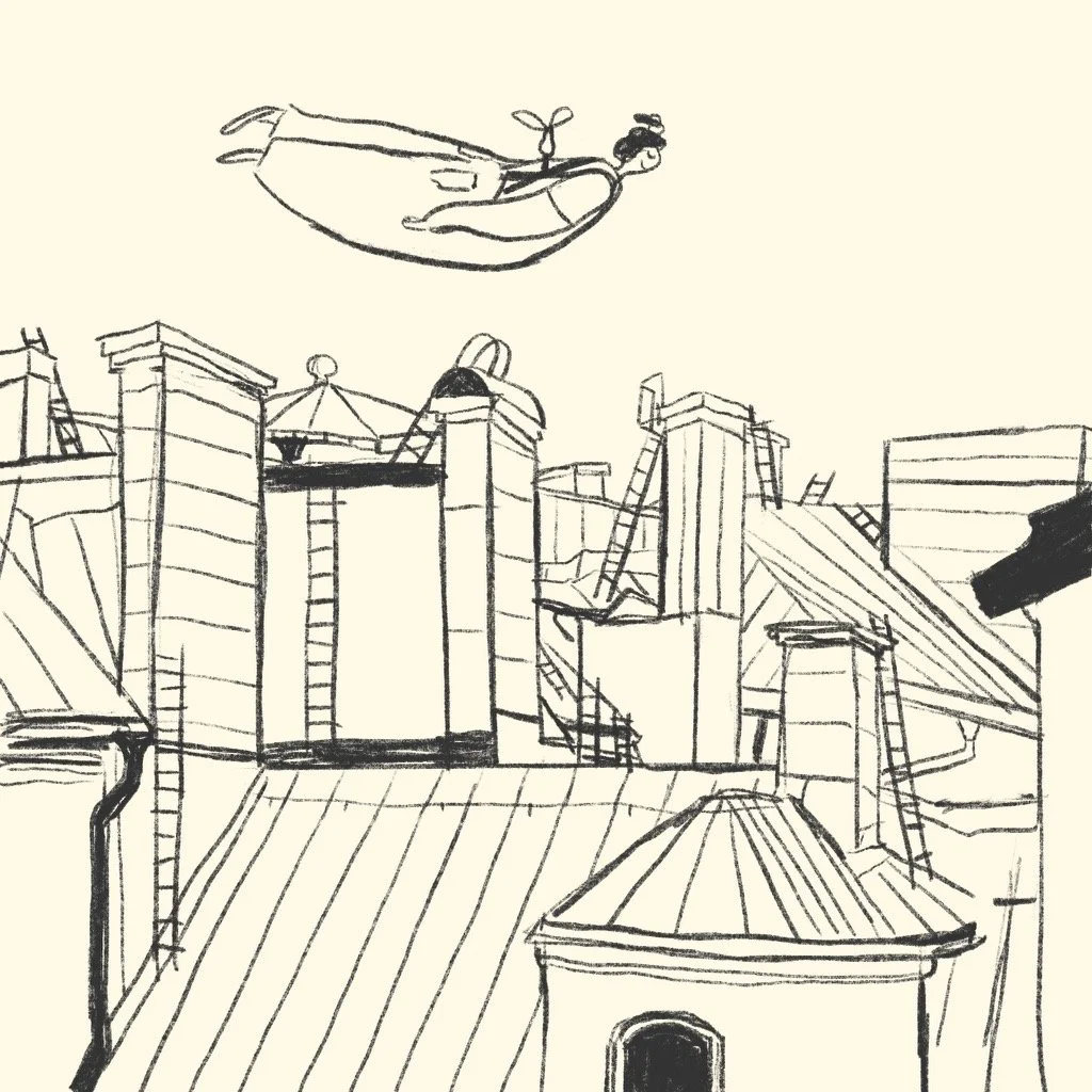 Inspired by Astrid Lindgren’s ”Karlsson på taket”. The motif is drawn based on a real view in Vasastan, Stockholm 2022.